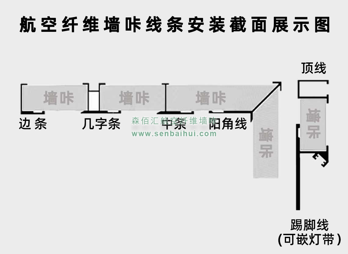 湖州航空纤维墙咔铝合金带灯中条(哑黑氧化)